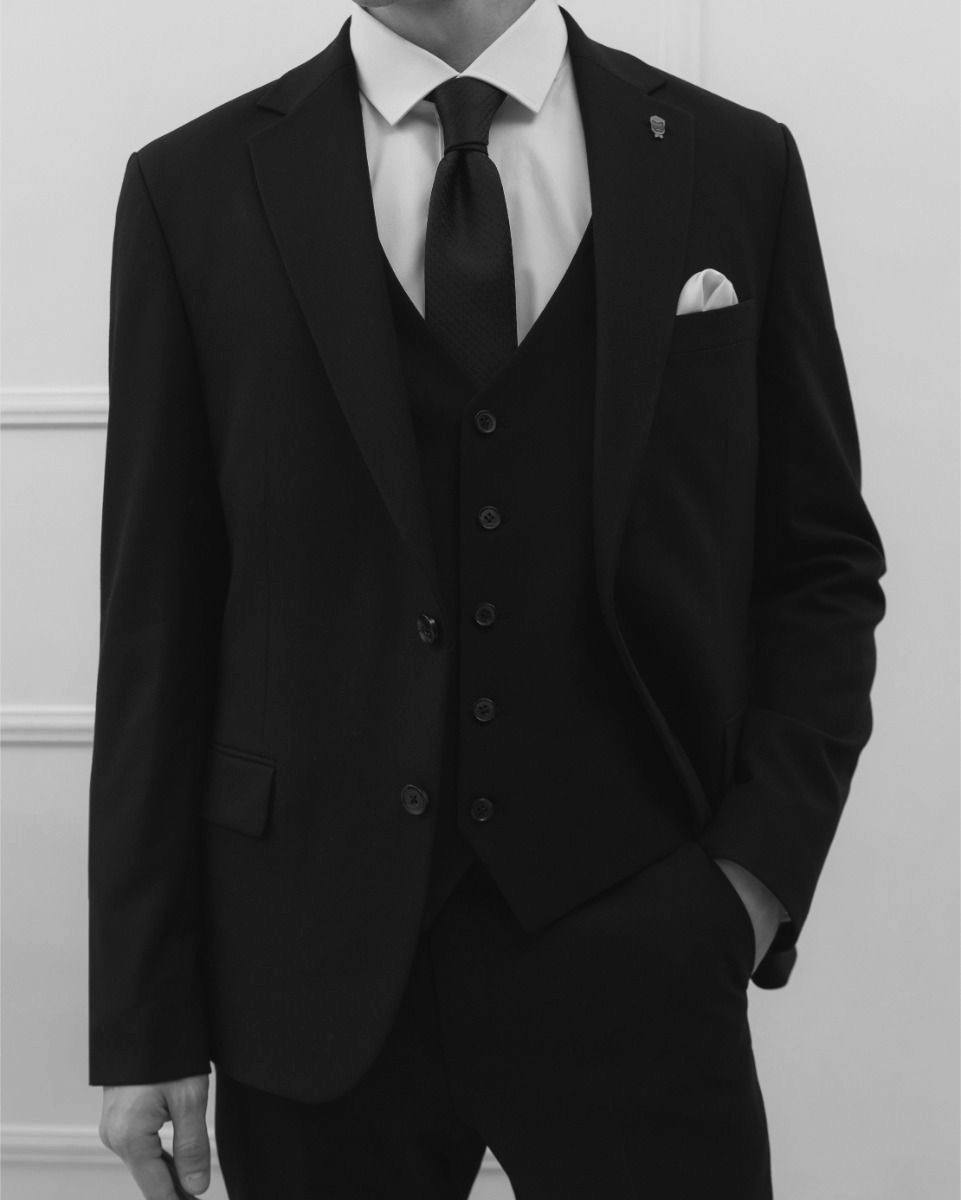 Классический костюм — это пиджак и брюки из одной ткани с минималистичным дизайном, универсальным для разных случаев.